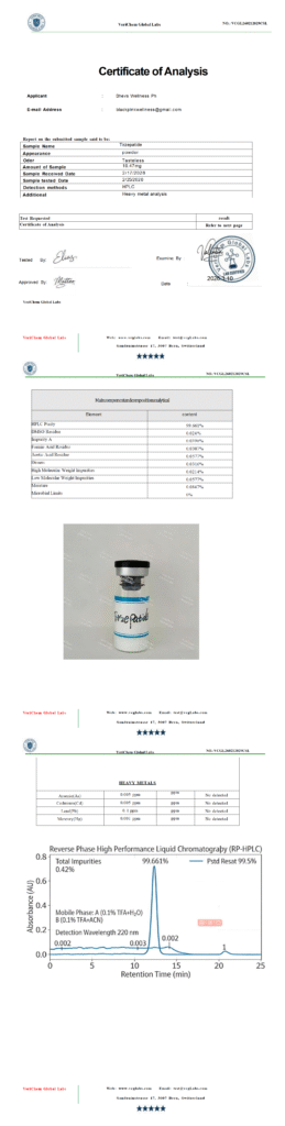 by qian006@zen-ocean.com March 24, 2026 Testing Report Client: Bhevs Wellness PhProduct Name:TirzepatideReport Date: 3/10/2026Report Number:VCGL260212029CSL