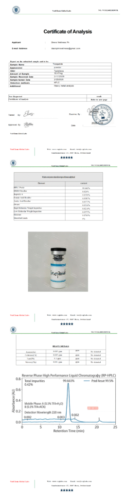 by qian006@zen-ocean.com March 24, 2026 Testing Report Client:Applicant: Bhevs Wellness PhProduct Name:TirzepatideReport Date: 3/10/2026Report Number:VCGL260212029CSL