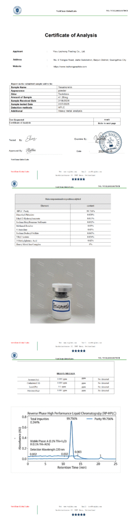 by qian006@zen-ocean.com April 9, 2026 Testing Report Client: Yiwu Lezhong Trading Co., Ltd.Product Name:TesamorelinReport Date: 03/15/2026Report Number:VCGL260211017DCB