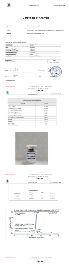 by qian006@zen-ocean.com April 9, 2026 Testing Report Client: Yiwu Lezhong Trading Co., Ltd.Product Name:TesamorelinReport Date: 03/15/2026Report Number: VCGL260211017DCB