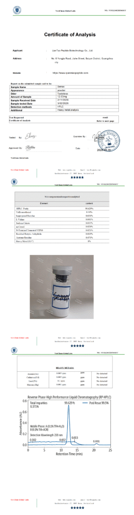 by qian006@zen-ocean.com April 9, 2026 Testing Report Client: LianTao Peptide Biotechnology Co., Ltd.Product Name:SemaxReport Date: 3/15/2026Report Number:VCGL260228334GCC