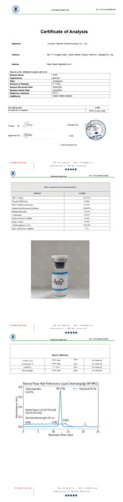 by qian006@zen-ocean.com April 9, 2026 Testing Report Client: LianTao Peptide Biotechnology Co., Ltd.Product Name:AODReport Date: 3/15/2026Report Number:VCGL260207182GHC