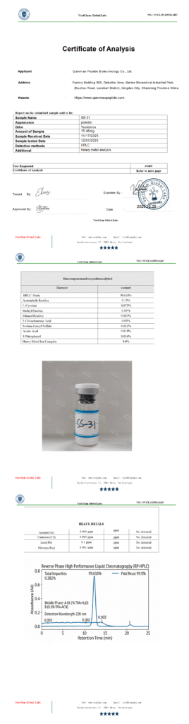 by qian006@zen-ocean.com January 6, 2026 Testing Report Client: Qianmiao Peptide Biotechnology Co., Ltd.Product Name:SS-31Report Date: 12/28/2025Report Number:VCGL251125361ARC