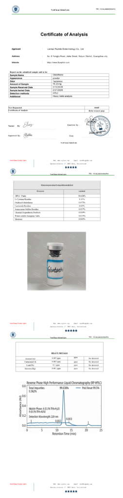 by qian006@zen-ocean.com April 10, 2026 Testing Report Client:Liantao Peptide Biotechnology Co., LtdProduct Name:GlutathioneReport Date: 3/15/2026Report Number:VCGL260201531JVG