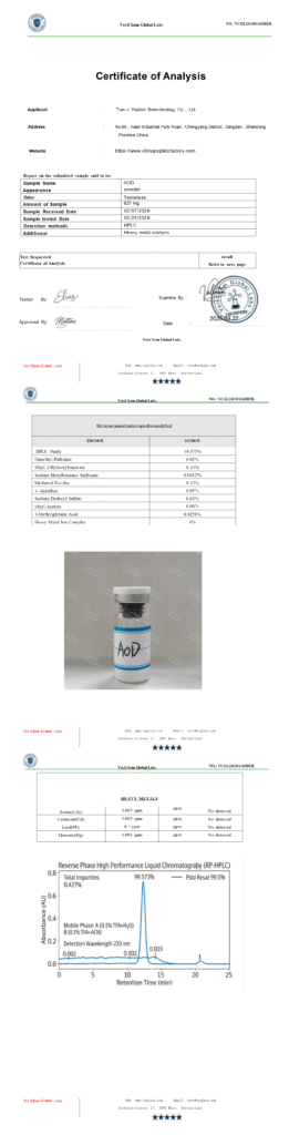 by qian006@zen-ocean.com April 13, 2026 Uncategorized Client: Tianji Peptide Biotechnology Co., Ltd.Product Name:AODReport Date: 3/27/2026Report Number: VCGL260201163DER