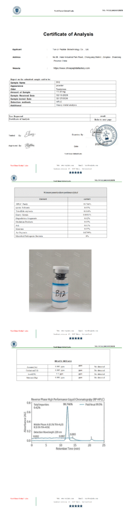 by qian006@zen-ocean.com April 13, 2026 Uncategorized Client: Tianji Peptide Biotechnology Co., Ltd.Product Name:B12Report Date: 3/27/2026Report Number: VCGL260201923BFB