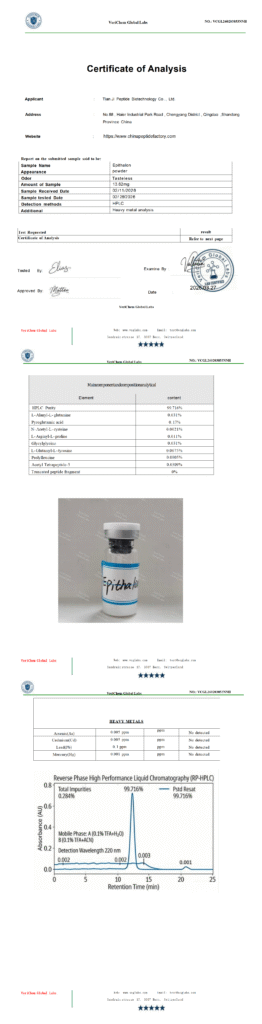 by qian006@zen-ocean.com April 14, 2026 Uncategorized Client: Tianji Peptide Biotechnology Co., Ltd.Product Name:EpithalonReport Date: 3/27/2026Report Number: VCGL260203853NNH