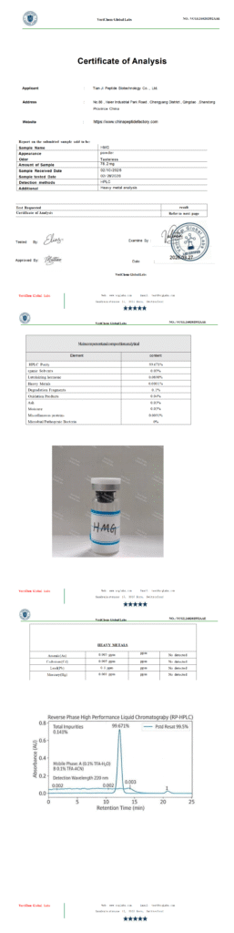 by qian006@zen-ocean.com April 14, 2026 Uncategorized Client: Tianji Peptide Biotechnology Co., Ltd.Product Name:HMGReport Date: 3/27/2026Report Number: VCGL260202552AAE