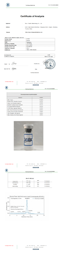 by qian006@zen-ocean.com April 14, 2026 Uncategorized Client: Tianji Peptide Biotechnology Co., Ltd.Product Name:LC120Report Date: 3/27/2026Report Number: VCGL260203448RRO