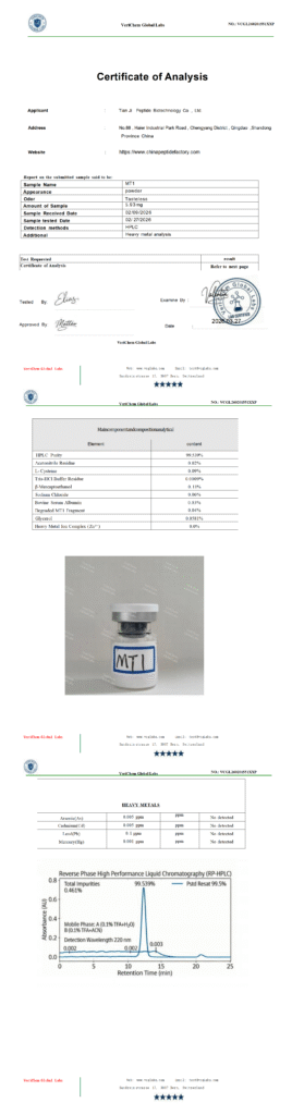 by qian006@zen-ocean.com April 14, 2026 Uncategorized Client: Tianji Peptide Biotechnology Co., Ltd.Product Name:MT1Report Date: 3/27/2026Report Number: VCGL260201551XXP