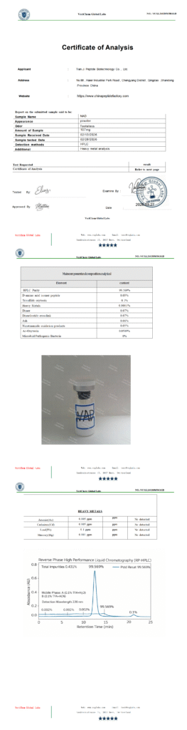by qian006@zen-ocean.com April 14, 2026 Uncategorized Client: Tianji Peptide Biotechnology Co., Ltd.Product Name:NADReport Date: 3/27/2026Report Number: VCGL260205658GGD