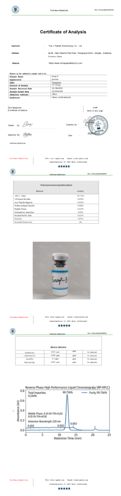 by qian006@zen-ocean.com April 14, 2026 Uncategorized Client: Tianji Peptide Biotechnology Co., Ltd.Product Name:Snap-8Report Date: 3/27/2026Report Number: VCGL260201059TTG
