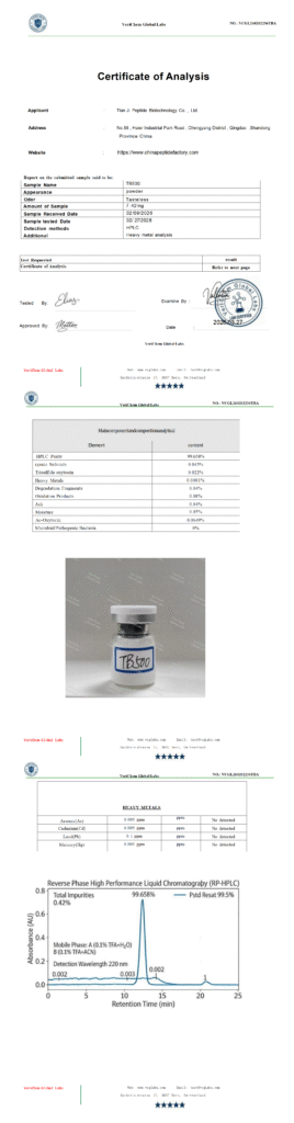by qian006@zen-ocean.com April 15, 2026 Uncategorized Client: Tianji Peptide Biotechnology Co., Ltd.Product Name:TB500Report Date: 3/27/2026Report Number: VCGL260202236TBA
