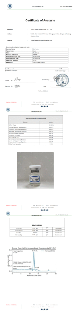 by qian006@zen-ocean.com April 15, 2026 Uncategorized Client: Tianji Peptide Biotechnology Co., Ltd.Product Name:BAC waterReport Date: 3/27/2026Report Number: VCGL260203446BAC