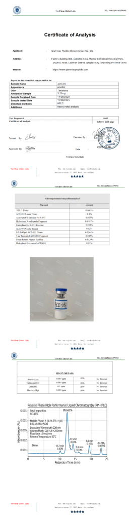 by qian006@zen-ocean.com January 20, 2026 Testing Report Client: Qianmiao Peptide Biotechnology Co., Ltd.Product Name:ACE-031Report Date: 12/28/2025Report Number:VCGL251116227WNC