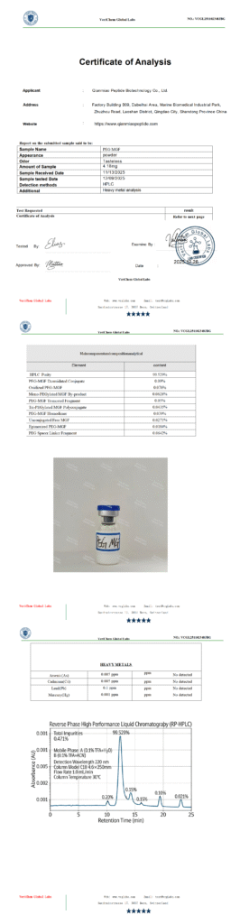 by qian006@zen-ocean.com January 20, 2026 Testing Report Client: Qianmiao Peptide Biotechnology Co., Ltd.Product Name:PEG MGFReport Date: 12/28/2025Report Number:VCGL251102348JBG