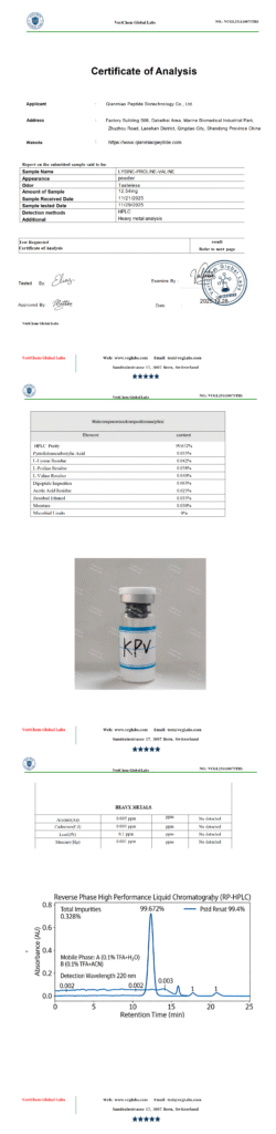 by qian006@zen-ocean.com January 1, 2026 Testing Report Client: Qianmiao Peptide Biotechnology Co., Ltd.Product Name: KPVReport Date: 12/28/2025Report Number: VCGL251110073TRS