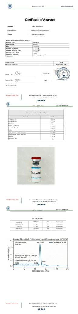 by qian006@zen-ocean.com March 19, 2026 Testing Report Client:Peptypure Wellness Products TradingProduct Name:TirzepatideReport Date: 3/10/2026Report Number:VCGL260209025CSL